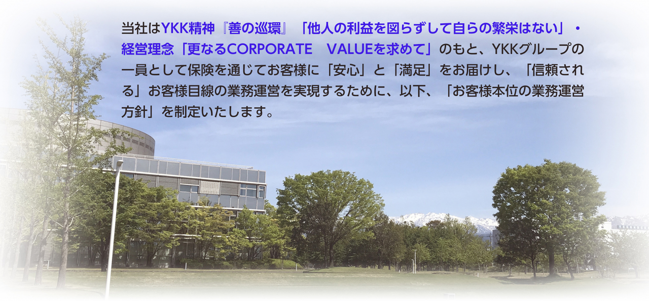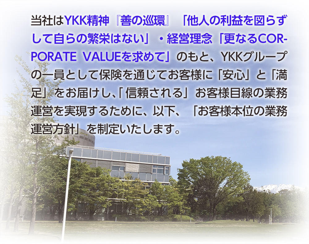 当社は、保険サービスがあって良かったと思えるお客様対応を1人1人が創造し、お客様とともに笑顔になることを目的として誠実、迅速かつ適切に対応するとともに、「お客様の声」を業務品質向上に活かしていきます。